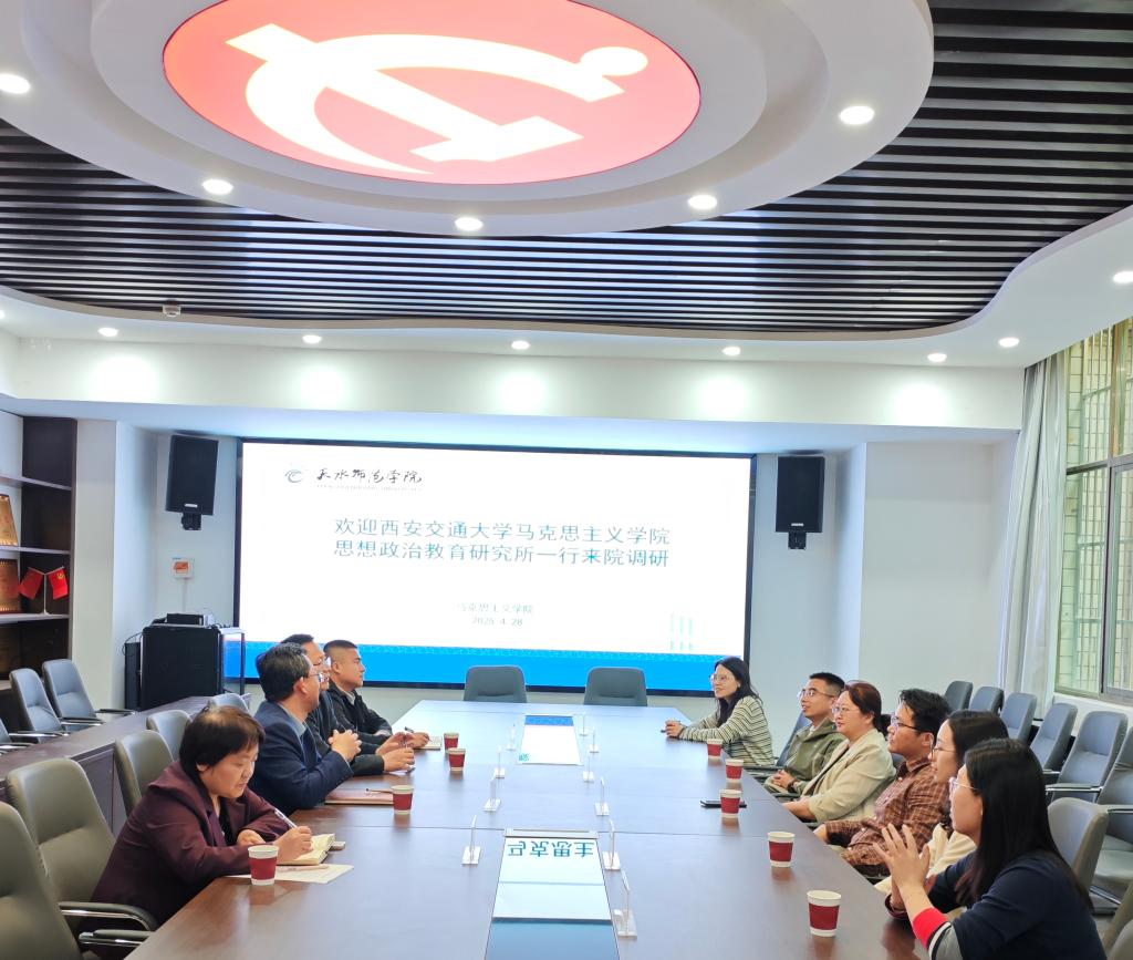 在座谈交流环节,刘建军院长首先就西安交通大学pp电子官方网站入口长期以来对口帮扶pp电子官网表达了感谢,介绍了学院的历史沿革与学科建设情况。朱旭教授重点介绍了西安交通大学pp电子官方网站入口思想政治教育研究所在理论创新、实践探索方面的特色成果。双方围绕隐性思政教育、创新型人才培养模式、就业质量提升路径等问题深入交换意见,分享了各自的做法和经验。