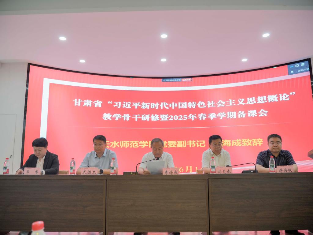 6月14日,由中共甘肃省委教育工作委员会、甘肃省教育厅指导,甘肃省“习近平新时代中国特色社会主义思想概论”分教学指导委员会、全国高校思政课“手拉手”集体备课中心(兰州大学)主办,全国高校思政课名师工作室(兰州大学)、天水师范学院pp电子官方网站入口、甘肃省思想政治理论课余明远名师工作室承办的甘肃省“习近平新时代中国特色社会主义思想概论”教学骨干研修暨2025年春季学期备课会在天水师范学院举办。来自中国人民大学、兰州大学、西北师范大学、兰州交通大学等高校的专家学者及骨干教师代表齐聚一堂,共同研讨新时代思政课教学创新与发展。