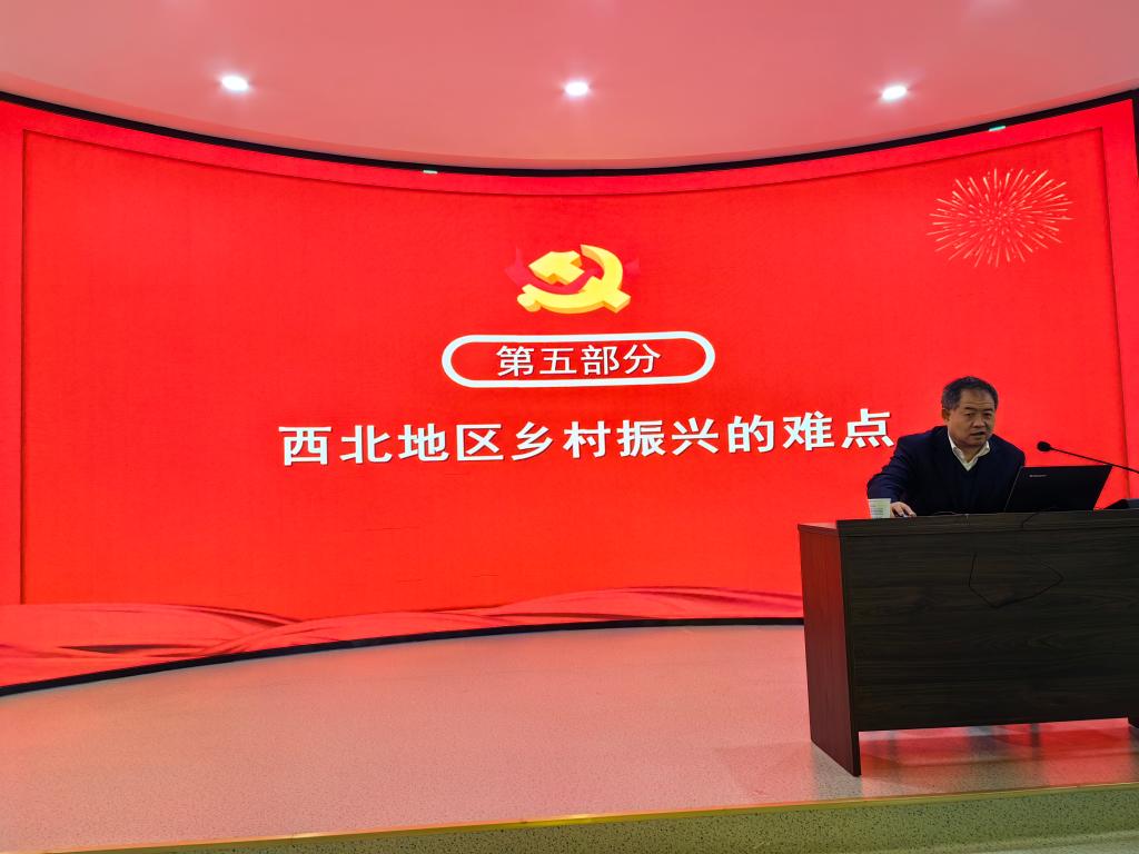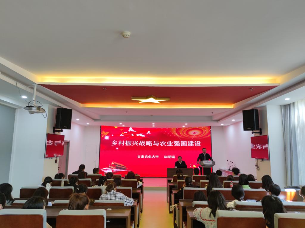 尚明瑞教授以“乡村振兴战略与农业强国建设”为题,从乡村与城市聚落的形成发展、当前世界农业经济的发展现状、乡村振兴战略的提出与实施、农业强国以及农业人才强国、西北地区乡村振兴的难点、甘肃省全面推进乡村振兴的部署、乡村振兴中的金融支持问题等七个方面进行了全面系统地阐释。报告以党的二十大精神为指导,深入解读2023年中央一号文件精神,紧密结合西北地区及甘肃实际,论述了强国必先强农,农强方能国强。全面推进乡村振兴,既是实现中国式农业农村现代化的必由之路,也是建设农业强国的重要任务。强调要立足国情农情,体现中国特色,深刻领悟农业强国的历史方位、战略定位、统领地位,着力解决重点和难点,强化政策和要素供给,推进科技和制度创新,走出一条中国特色农业现代化道路。
