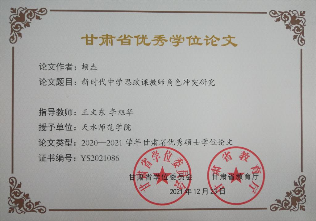 2019级硕士颉垚硕士学位论文获评2020-2021学年省优秀硕士学位论文
