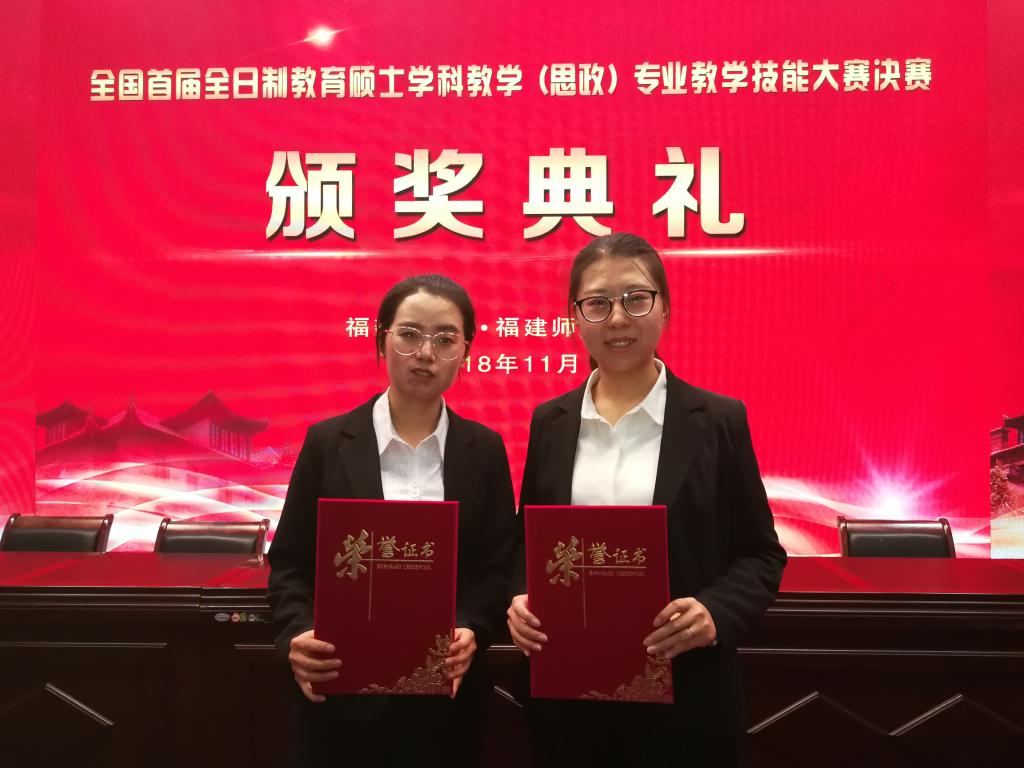 2017级教育硕士在2018年全国全日制首届教育硕士学科教学(思政)专业教学技能大赛中获得二、三等奖