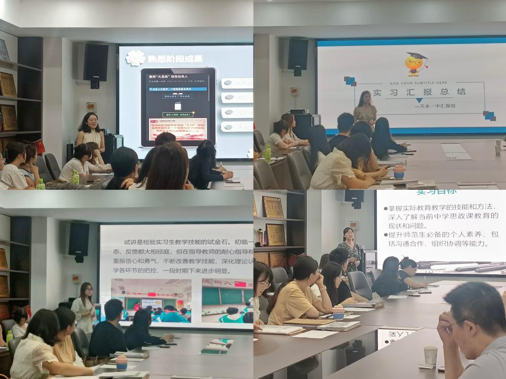 教育教学实践是教育硕士成长中的重要培养环节,是锤炼教育硕士教学技能和提升综合素养的“练兵场”和“试验田”。在天水市第一中学(麦积校区)、天水市第二中学和天水市逸夫实验中学三个实践教学基地参加集中实践教学的23名2022级学科教学(思政)教育硕士近日圆满完成实践教学任务返回学校。7月4日下午,pp电子官方网站入口举行教育硕士集中实践教学汇报会,研究生导师和2022级学科教学(思政)教育硕士参加,2023级学科教学(思政)教育硕士旁听观摩。汇报会由刘建军院长主持。