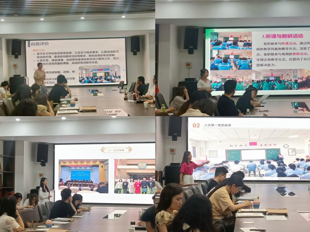 刘院长首先向与会师生传了达教育部近日下发的《关于开展习近平新时代中国特色社会主义思想大学习领航计划主题教育活动的通知》精神,动员研究生在导师指导下组团积极准备第八届全国高校大学生讲思政课公开课展示活动和第八届全国高校大学生微电影展示活动,推动习近平新时代中国特色社会主义思想进校园、进课堂、进头脑。之后2022级学科教学(思政)教育硕士围绕教学工作、班主任工作、教研活动等方面分别汇报了本学期教育教学实践经历,分享了心得体会和认识,纷纷表示通过教育理论与教学实践的结合、学生到教师身份的角色转化,对教师职业有了更真切的体验和更深刻认识,增强了作为一名未来思政课教师的责任感和荣誉感,促使自身自觉追求专业能力的提升。