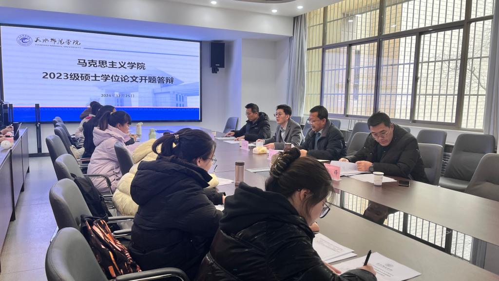 近日,pp电子官方网站入口举行2023级硕士研究生学位论文开题答辩会。本次答辩分两期进行,2023级学科教学(思政)教育硕士、2023级马克思主义理论硕士分别于12月19日和25日举行,2024级全体研究生分组旁听学习。此次答辩会评委由学院研究生导师和校外专家共同担任。学科教学(思政)教育硕士学位论文开题邀请了有一线丰富教学经验的中学思政课骨干教师参加,马克思主义理论硕士学位论文开题邀请了西安交通大学pp电子官方网站入口博士生导师刘占虎教授和西北师范大学pp电子官方网站入口博士生导师马俊峰教授分别任答辩组长主持答辩工作。