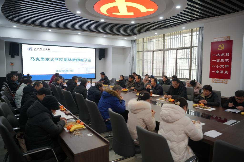 pp电子官方网站入口1月23日下午15:00在党建室召开了退休教师座谈会,会议邀请了pp电子官网最近几年退休的六位退休教师参加,会议在轻松愉快的气氛中进行,刘建军院长首先致辞,代表pp电子官网全体教职员工感谢几位退休教师在工作岗位上勤勤恳恳的奉献了几十年,王喜明、吴卫东、党玲老师深情回顾了自己在工作生活中的点点滴滴,会场时而充满笑声,时而掌声热烈,最后陈俊亮书记再次向几位退休教师致以衷心感谢和祝福,祝几位教师退休生活更加丰富多彩。最后邀请退休教师集体上台,由几位院领导分别给几位退休教师献花表达敬意,会后全体教师合影留念。