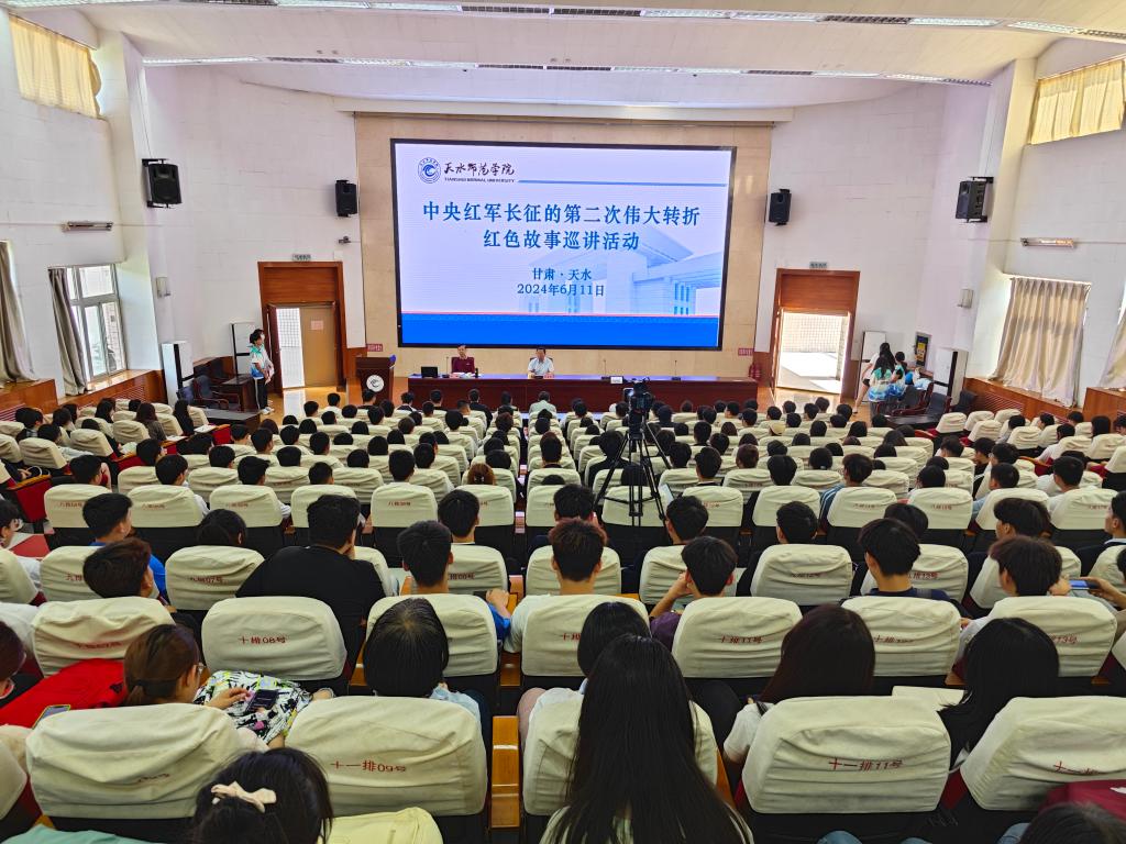 为深入学习贯彻习近平总书记关于红色文化育人的重要指示批示精神,挖掘利用甘肃红色文化资源,让青少年深入了解党的光辉历程,感受革命先烈的英勇事迹,切实发挥红色文化育人作用。6月11日—13日,天水师范学院pp电子官方网站入口牵头,协同天水市教育局、陇南市教育局、甘肃林业职业技术学院pp电子官方网站入口、甘肃工业职业技术学院pp电子官方网站入口、甘肃机电职业技术学院pp电子官方网站入口和陇南师范高等专科学校pp电子官方网站入口,特邀中国军事科学院中国军事百科特聘专家、原遵义军分区司令员孔健,面向天水、陇南地区大学生和中小学生群体,先后在天水师范学院、天水市新华门小学玉成分校、陇南师范高等专科学校举行了“中央红军长征的第二次伟大转折”红色故事系列巡讲活动。巡讲活动为期三天,天水和陇南地区大中小学生共600余人现场聆听。