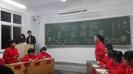 2014年10月30日至11月16日,政法学院第一届辩论赛在2号教学楼219教室成功举行。此次辩论赛引起了同学们的广泛关注。