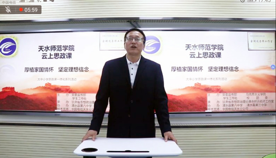此次云上思政课活动由天水师范学院党委宣传部、pp电子官方网站入口、学生工作处、校团委主办,甘肃省思想政治理论课余明远名师工作室承办,清水县第三中学、第八中学协办,中国电信天水分公司提供技术支持。