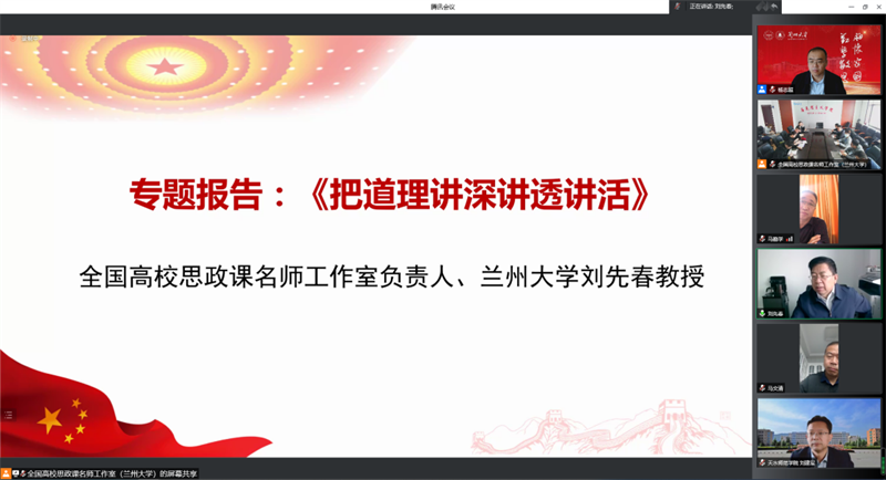 5月15日,由教育部全国高校思政课刘先春名师工作室、兰州大学pp电子官方网站入口主办,天水师范学院pp电子官方网站入口、甘肃民族师范学院pp电子官方网站入口、陇南师范高等专科学校pp电子官方网站入口、兰州科技职业学院、菏泽学院pp电子官方网站入口、黔东南民族职业技术学院马列主义教研部参与组织的“学习贯彻习近平总书记考察中国人民大学重要讲话精神暨教育部全国高校思政课名师工作室(兰州大学-刘先春)2022年第一期集体备课会”召开,会议采取线下与线上相结合的方式进行,由兰州大学pp电子官方网站入口副院长杨志超主持。