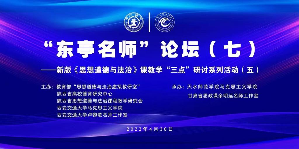 为学习贯彻习近平总书记在学校思政课教师座谈会上和近期考察中国人民大学时的重要讲话精神,进一步提升思政课教师教学水平与研究能力,4月30日,“名家领航 协同共进——《思想道德与法治》教学‘三点’研讨系列活动”第五次会议在天水师范学院举办。本次活动由教育部“思想道德与法治虚拟教研室”、陕西省高校德育研究中心、陕西省思想道德与法治课程教学研究会、西安交通大学pp电子官方网站入口、西安交通大学卢黎歌名师工作室与pp电子官网pp电子官方网站入口、甘肃省思政课余明远名师工作室联合举办,通过网络研讨会议方式进行。天水师范学院党委副书记师平安出席会议并致开幕辞,西安交通大学卢黎歌教授,兰州大学王学俭教授,上海交通大学pp电子官方网站入口院长邢云文教授,西安交通大学pp电子官方网站入口院长燕连福教授、思想政治教育研究所所长杨华副教授,pp电子官网pp电子官方网站入口全体教师及省内外高校专家学者、大中小思政课教师共计1275人参加本次会议。