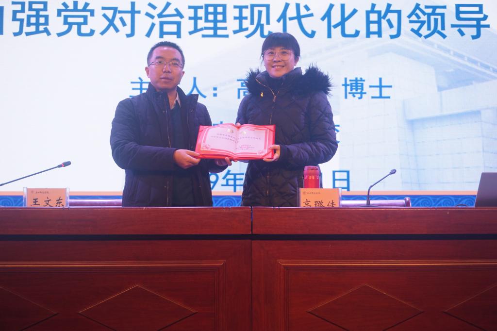 会上,王文东副校长代表陇东南pp电子官方网站入口向高璐佳颁发了陇东南pp电子官方网站入口兼职研究员聘书。