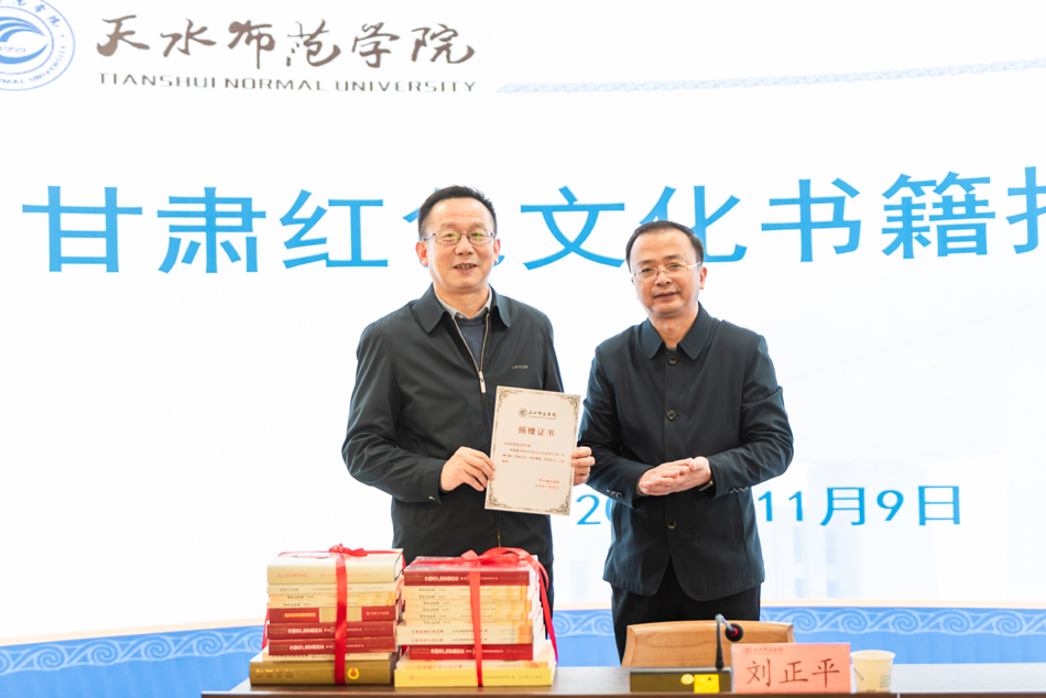 为认真贯彻落实习近平总书记关于“把红色资源利用好、把红色传统发扬好、把红色基因传承好”的指示精神,11月9日,甘肃省委党史研究室为pp电子官网捐赠甘肃红色文化书籍暨红色文化讲堂开讲仪式在红色文化教育体验馆举行。