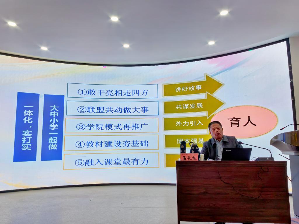 渠长根教授从“前提:一体化需要抓手”、“核心:红色文化是最佳抓手”、“关键:努力用好红色文化抓手”三个方面系统进行了阐述,深入解读了党中央、教育部近年发布的关于学校思想政治课一体化建设的系列政策文件,立足教育规律、青少年成长规律、人类成长规律,指出一体化是系统工程,适宜的抓手必不可少,认为红色文化是一体化的最佳抓手,结合浙江理工大学pp电子官方网站入口多年来用好红色文化推进大中小思政课一体化的相关实践经验,提出要以大中小学学段为“经”,以思政课程的要素为“纬”,建设纵向衔接、横向贯通、螺旋上升的全学段思政课程体系,用红色文化服务思政课一体化,努力做实大中小学一体化、区域一体化、党政军民学一体化、课程思政与思政课程一体化、理念与行动一体化,并祝福pp电子官网红色文化融入大中小学思政课有声有色。